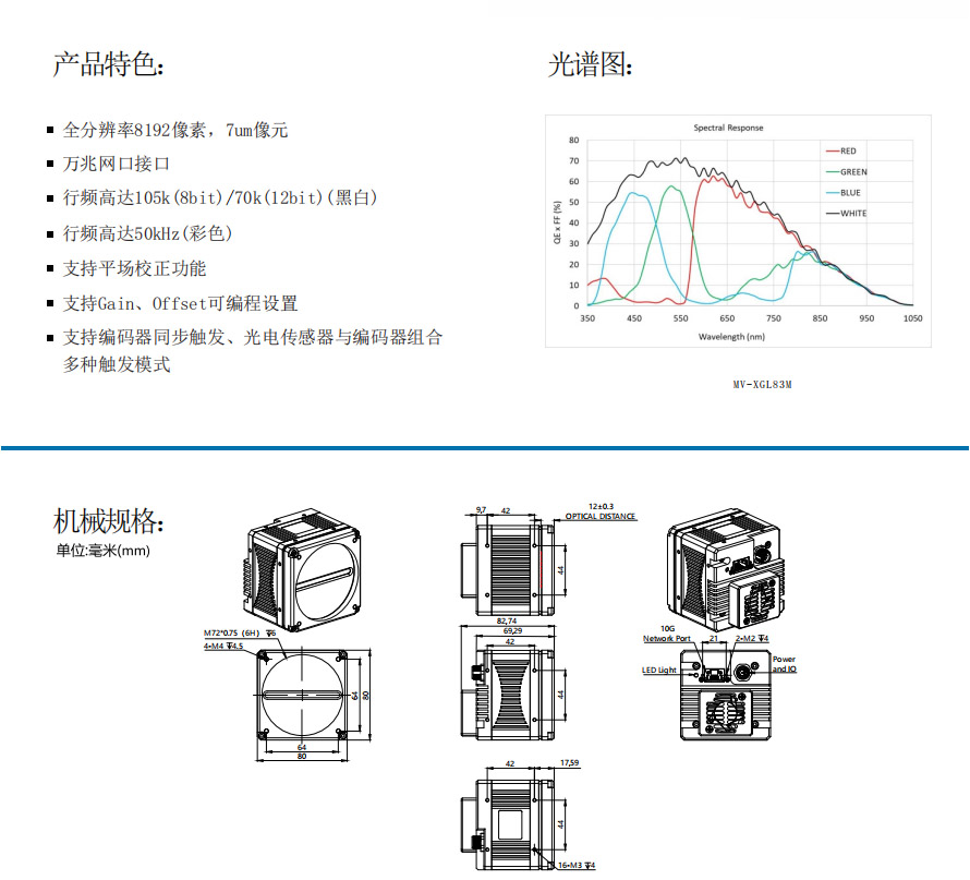 ● 搭載多款高像素和高幀率的面陣、線陣圖像傳感器,滿足客戶不同行業需求;