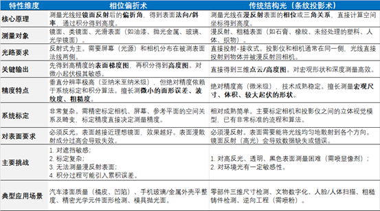 相位偏折術是機器視(shi)覺領(ling)域(yu)中針(zhen)對(dui)高反(fan)光、光滑表面進行高(gao)精度、全場三(san)維形貌測量(liang)的(de)尖(jian)端技術(shu)。它巧妙(miao)地(di)將光(guang)學相位測量與幾何光(guang)學結合,通過“看(kan)到”光線(xian)的偏(pian)折(zhe)來(lai)“觸摸(mo)”物體(ti)的形狀,在高端(duan)制造業和質量(liang)控制中扮演著不可替代的角色。